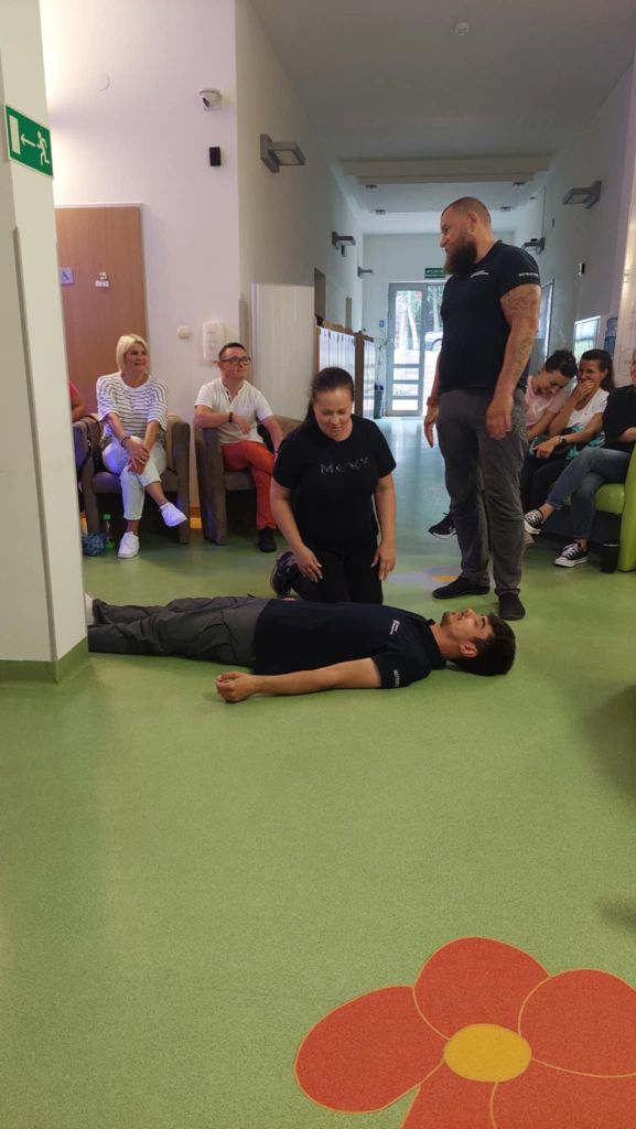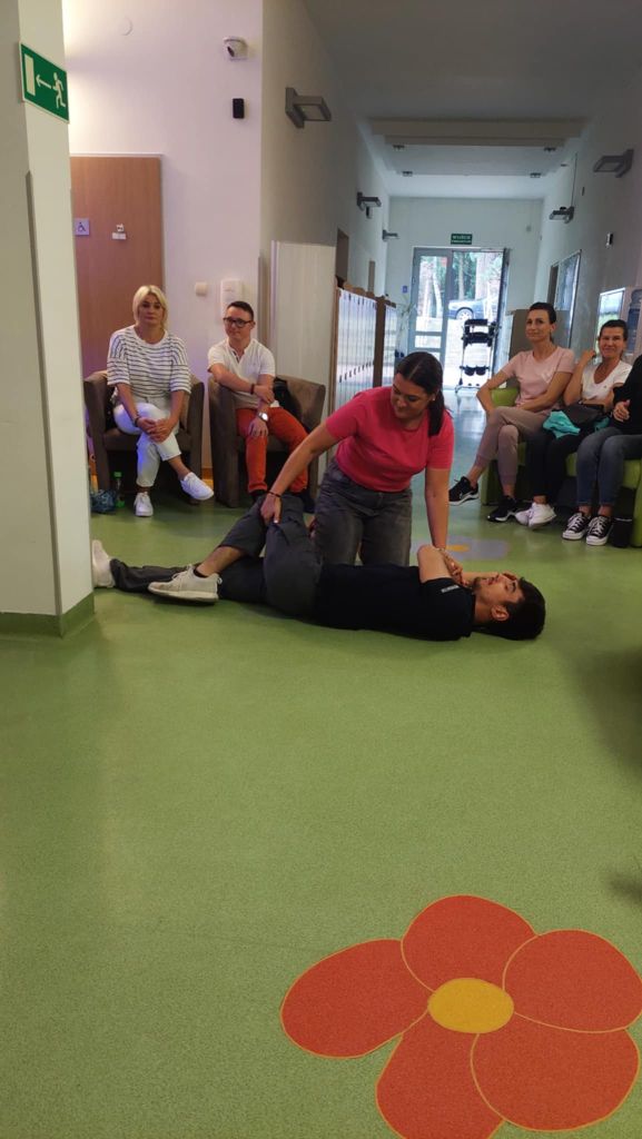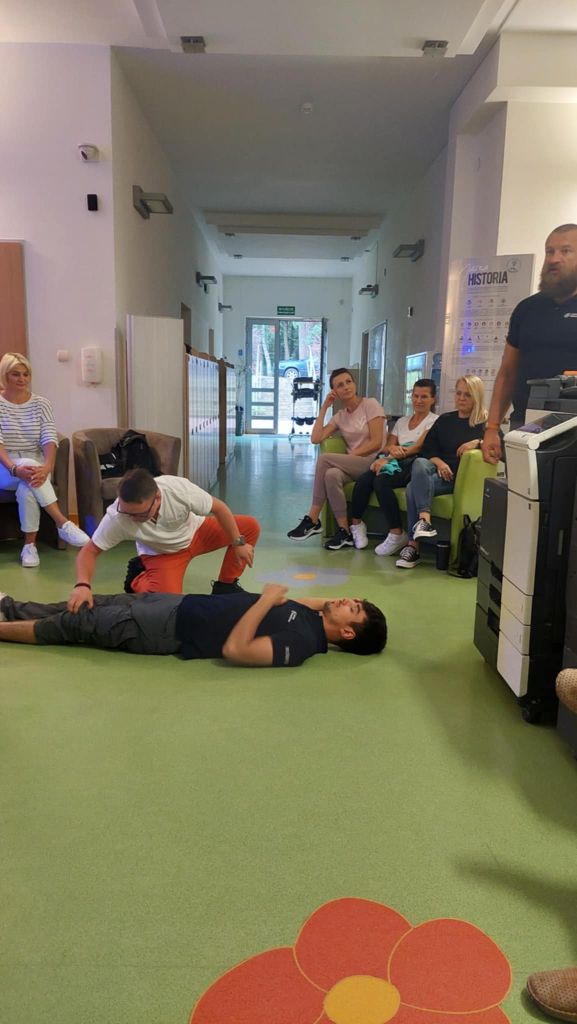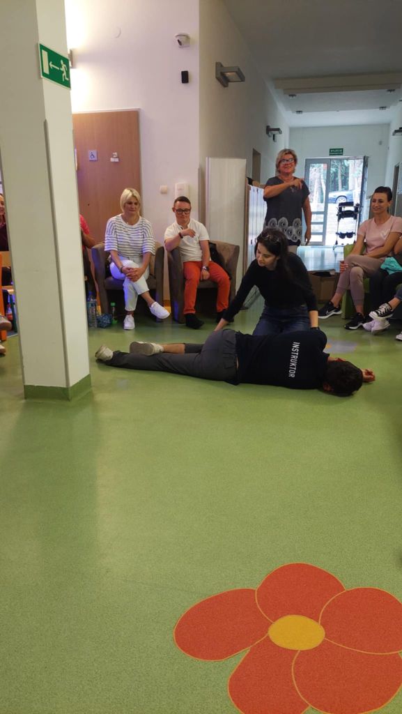 Sierpień zakończyliśmy ciekawym i praktycznym kilkugodzinnym szkoleniem z Pierwszej Pomocy Przedmedycznej dla pracowników placówek prowadzonych przez Stowarzyszenie Pomocy Niepełnosprawnym „BRATEK”, przeprowadzone przez Instruktorów Ratownictwa Medycznego z Centrum Ratownictwa we Wrocławiu.