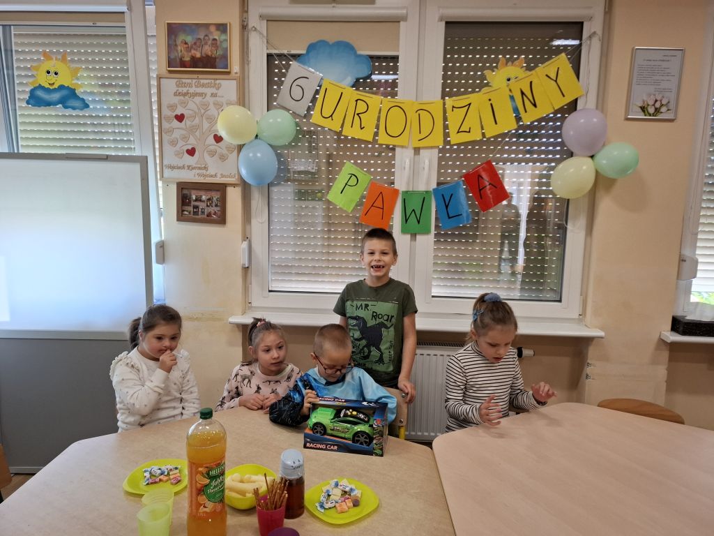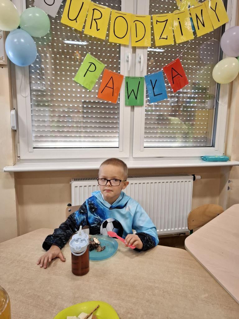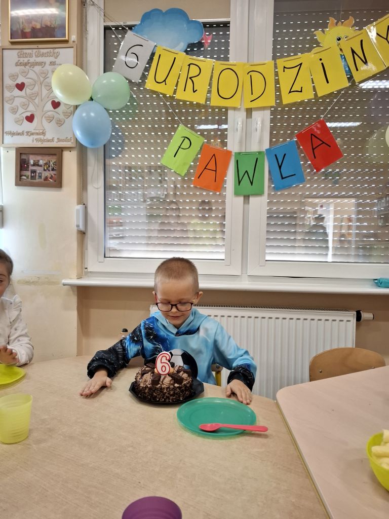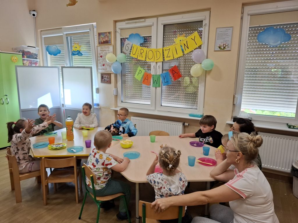 W grupie Biedronek była okazja do świętowania: nasz Paweł obchodził 6 urodziny. Były życzenia, prezenty i pyszny tort, a nasz solenizant pomyślał życzenie i zdmuchnął świeczkę na torcie. Po słodkim poczęstunku była wspólna zabawa. Sto lat Pawełku!