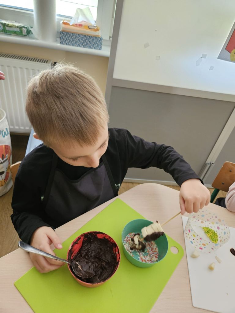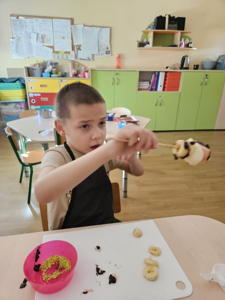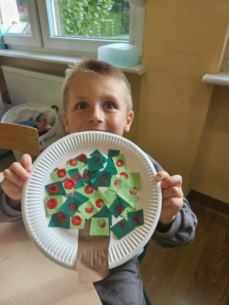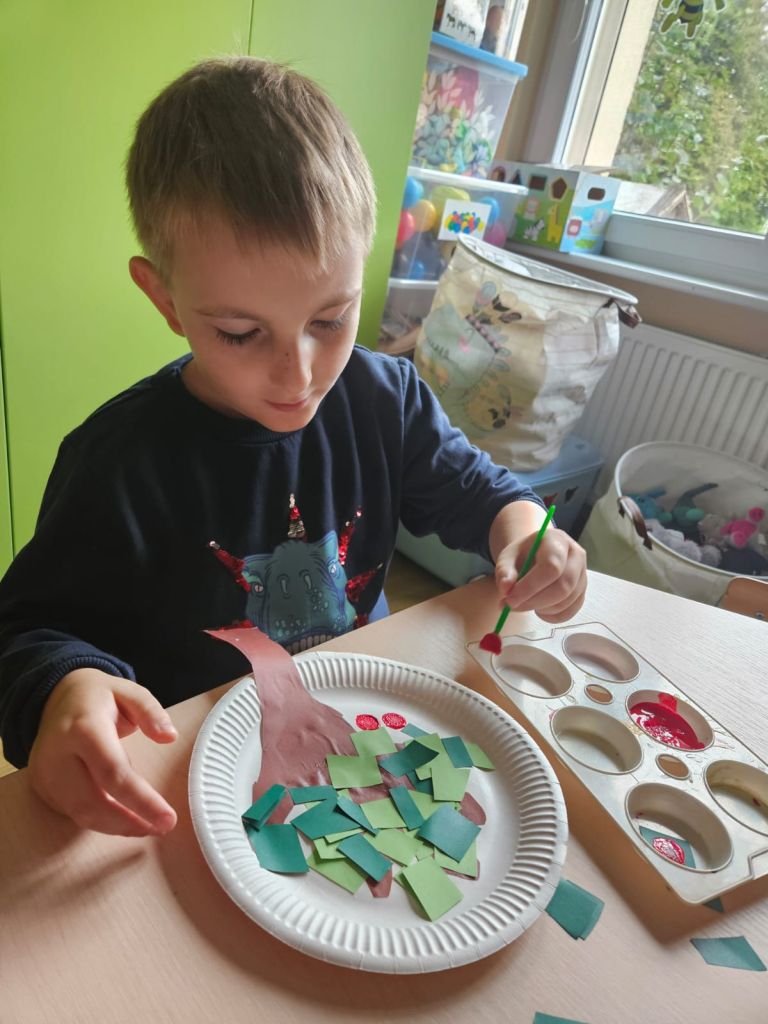 Podczas zajęć plastycznych tworzyliśmy prace o tematyce jesiennej – kolorowe liście, drzewa i owoce. Nie zabrakło także elementów sensoryki – dzieci miały możliwość doświadczać różnorodnych faktur, zapachów i kształtów, co sprawiło im dużo radości.