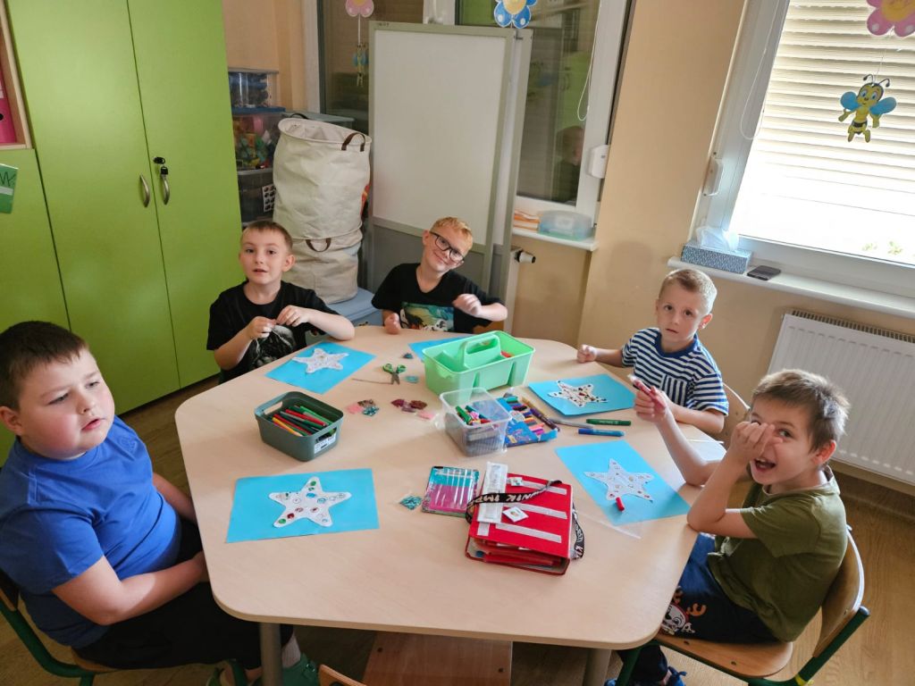 Na początku miesiąca wspominaliśmy lato, podróże oraz zabawy na świeżym powietrzu. Rozmowy o wakacjach były okazją do opowiadania, rozwijania słownictwa i budowania więzi między dziećmi.