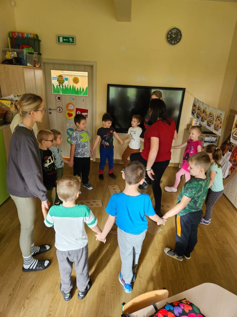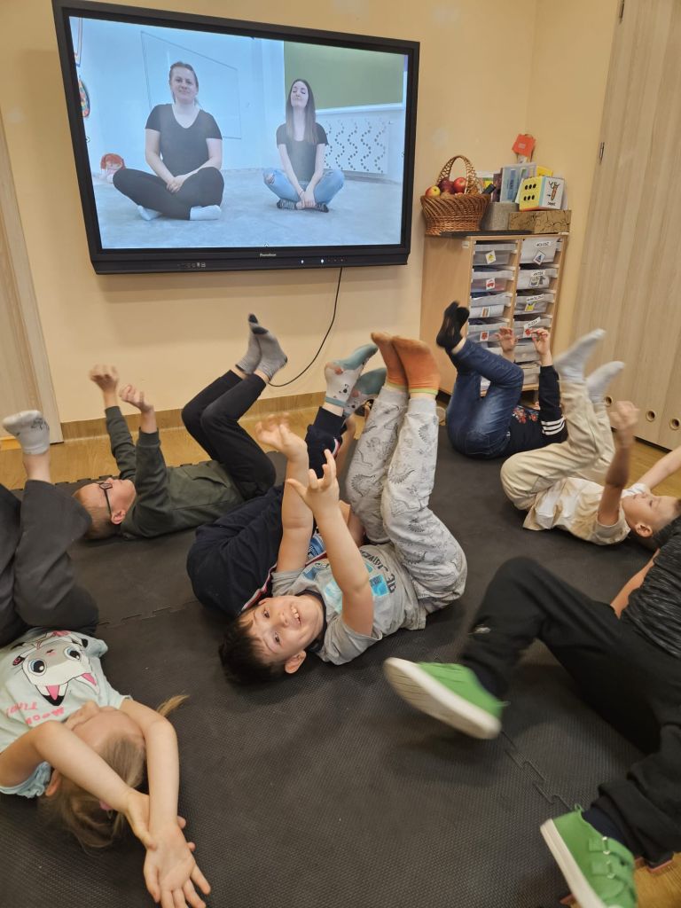 W ramach zajęć fizycznych dzieci ćwiczyły metodą Weroniki Sherborne, która pozwalała im na rozwój motoryki oraz integrację sensoryczną przez ruch i zabawę.