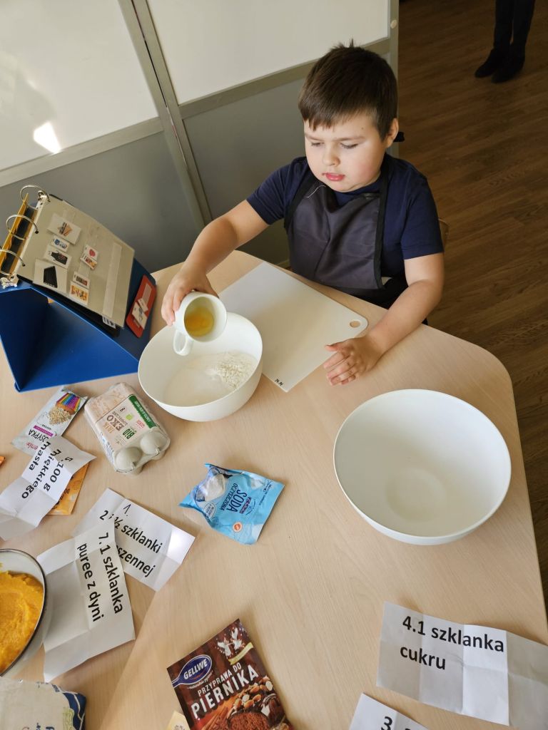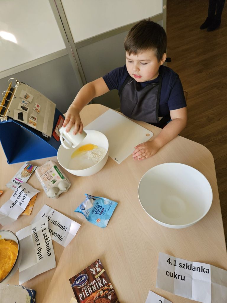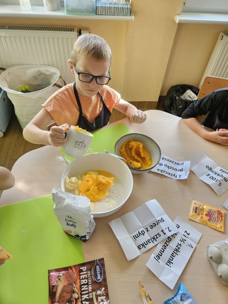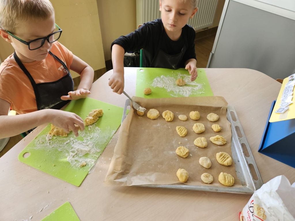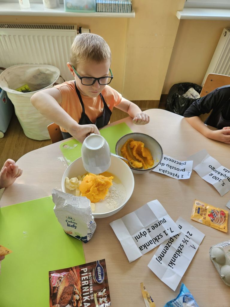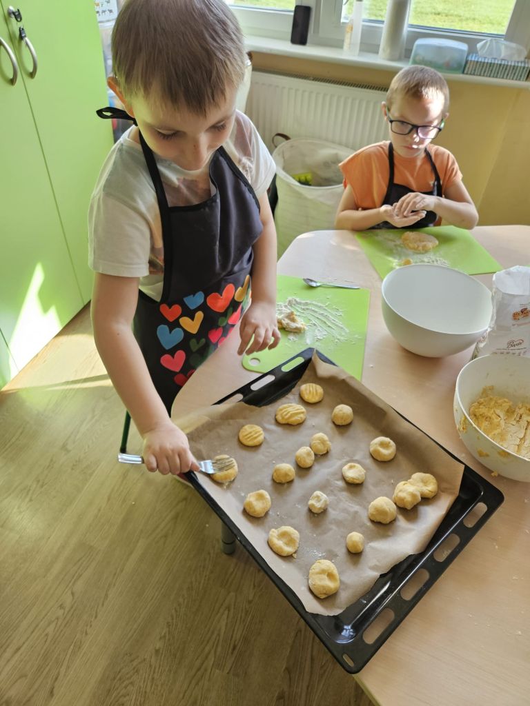 Słoneczka samodzielnie przygotowały pieczone ziemniaki, które potem z apetytem zjadały – nie zabrakło również pysznych frytek! Kolejną atrakcją był warsztat sensoryczny, podczas którego dzieci wykonały masę plastyczną z dyni, której faktura i zapach sprawiły im mnóstwo radości. Ponadto, dzieci malowały dyniowe obrazy za pomocą balonów, co stanowiło świetną okazję do rozwijania wyobraźni i zdolności manualnych.
