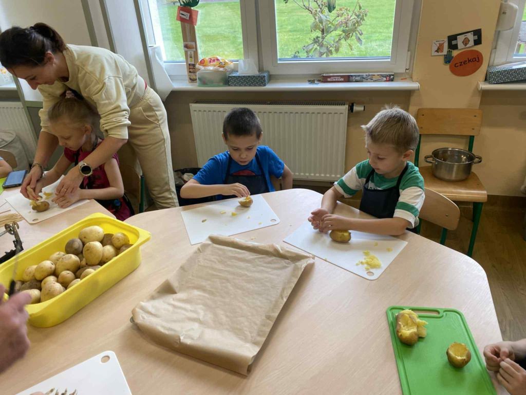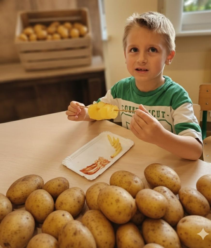 W październiku w naszym przedszkolu zorganizowaliśmy wyjątkowe zajęcia, które wprowadziły dzieci w magiczny świat jesieni. Dzieci miały okazję świętować Dzień Ziemniaka oraz Dyni, uczestnicząc w różnorodnych, kreatywnych aktywnościach.