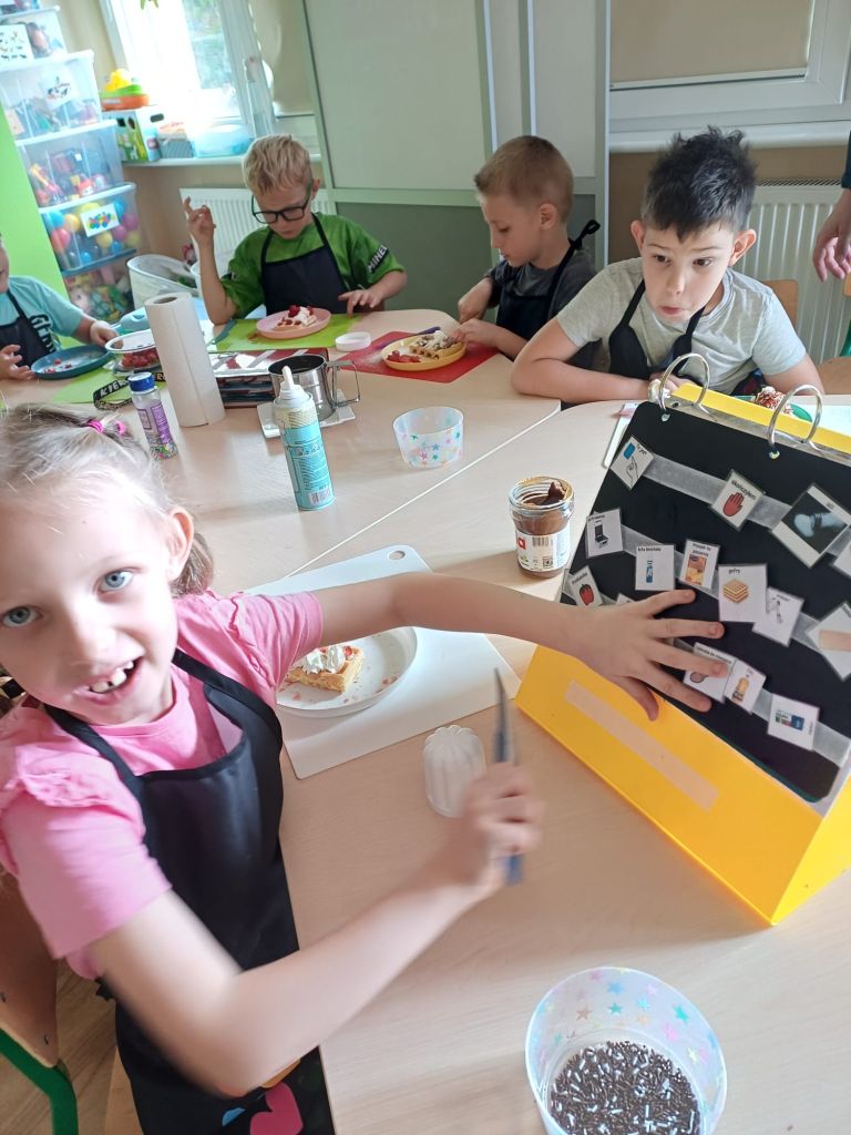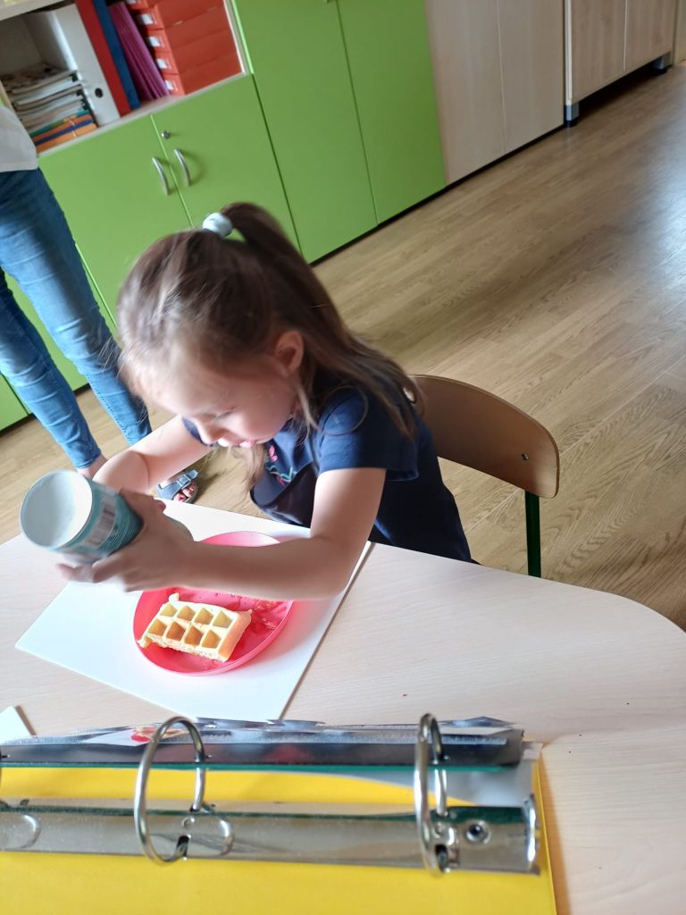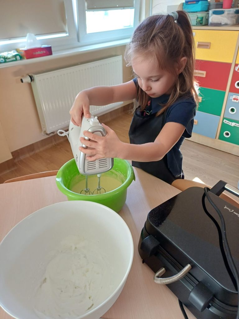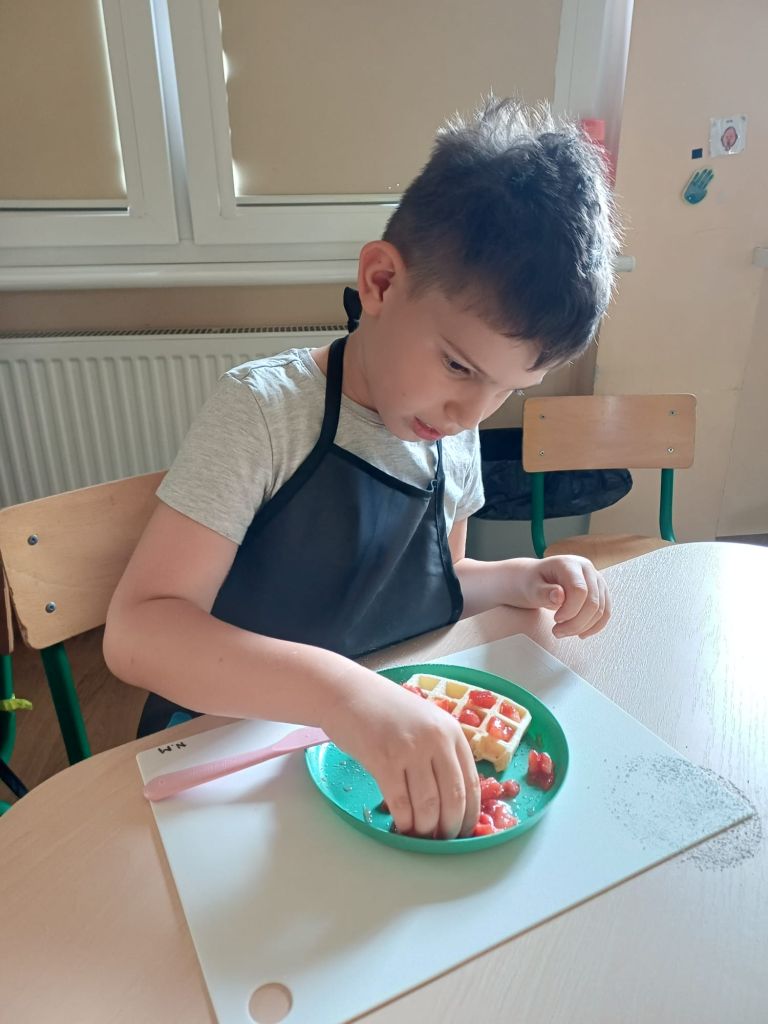 Dużo uwagi poświęcaliśmy temu, by dobrze się poznać, uczyć się współpracy i rozwijać umiejętności komunikacyjne. Zajęcia sensoryczne były okazją do odkrywania nowych wrażeń i pobudzania wyobraźni. Nie obyło się również bez zajęć kulinarnych. Wspólne przyrządzanie gofrów sprawiło dzieciom mnóstwo radości, a efekt końcowy okazał się przepyszny. Co ważne, podczas tych zajęć dzieci uczyły się także samodzielności, współpracy oraz czerpania satysfakcji z własnej pracy.