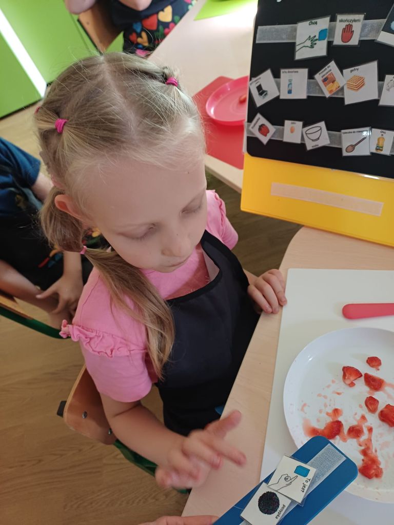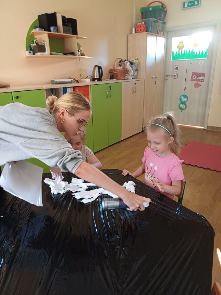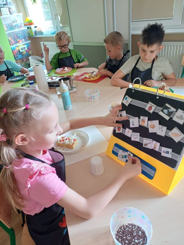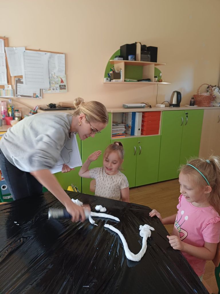 Dużo uwagi poświęcaliśmy temu, by dobrze się poznać, uczyć się współpracy i rozwijać umiejętności komunikacyjne. Zajęcia sensoryczne były okazją do odkrywania nowych wrażeń i pobudzania wyobraźni. Nie obyło się również bez zajęć kulinarnych. Wspólne przyrządzanie gofrów sprawiło dzieciom mnóstwo radości, a efekt końcowy okazał się przepyszny. Co ważne, podczas tych zajęć dzieci uczyły się także samodzielności, współpracy oraz czerpania satysfakcji z własnej pracy.