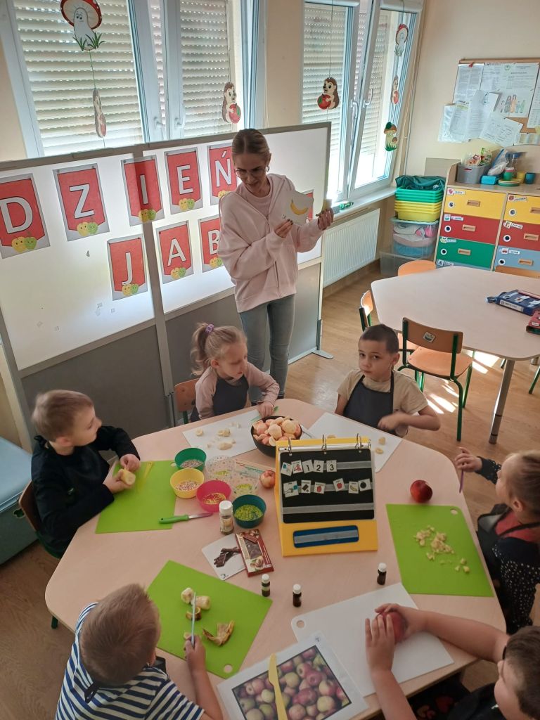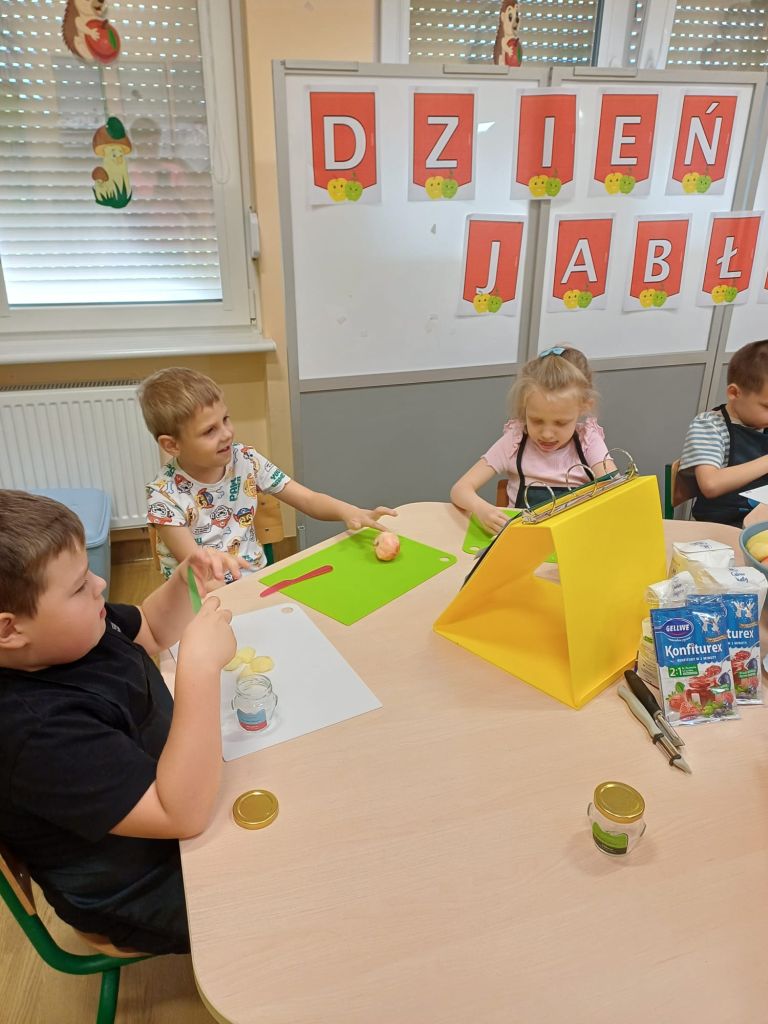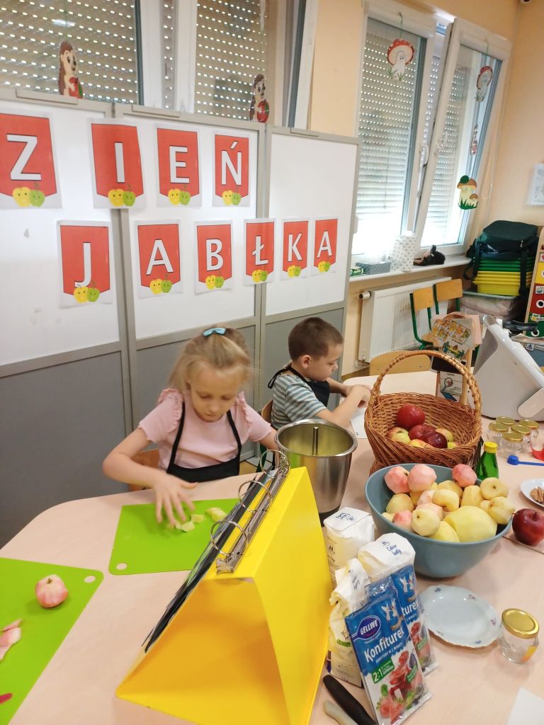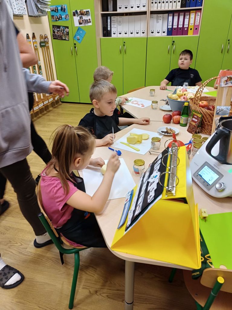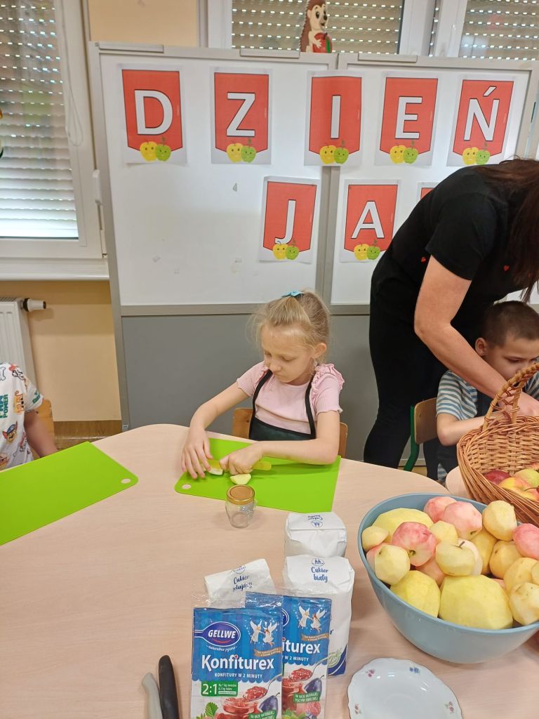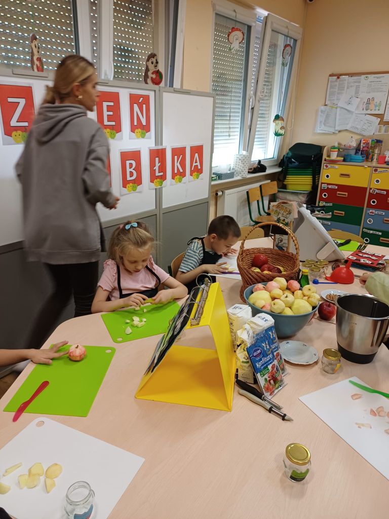 W tym tygodniu dzieci uczyły się kroić jabłka na kawałki. Była to doskonała okazja, by ćwiczyć cierpliwość, skupienie i sprawność dłoni. Pokrojone owoce zmieniły się w pyszny mus jabłkowy, który dzieci zabrały do domu, aby poczęstować rodzinę i wspólnie cieszyć się smakiem jesieni.