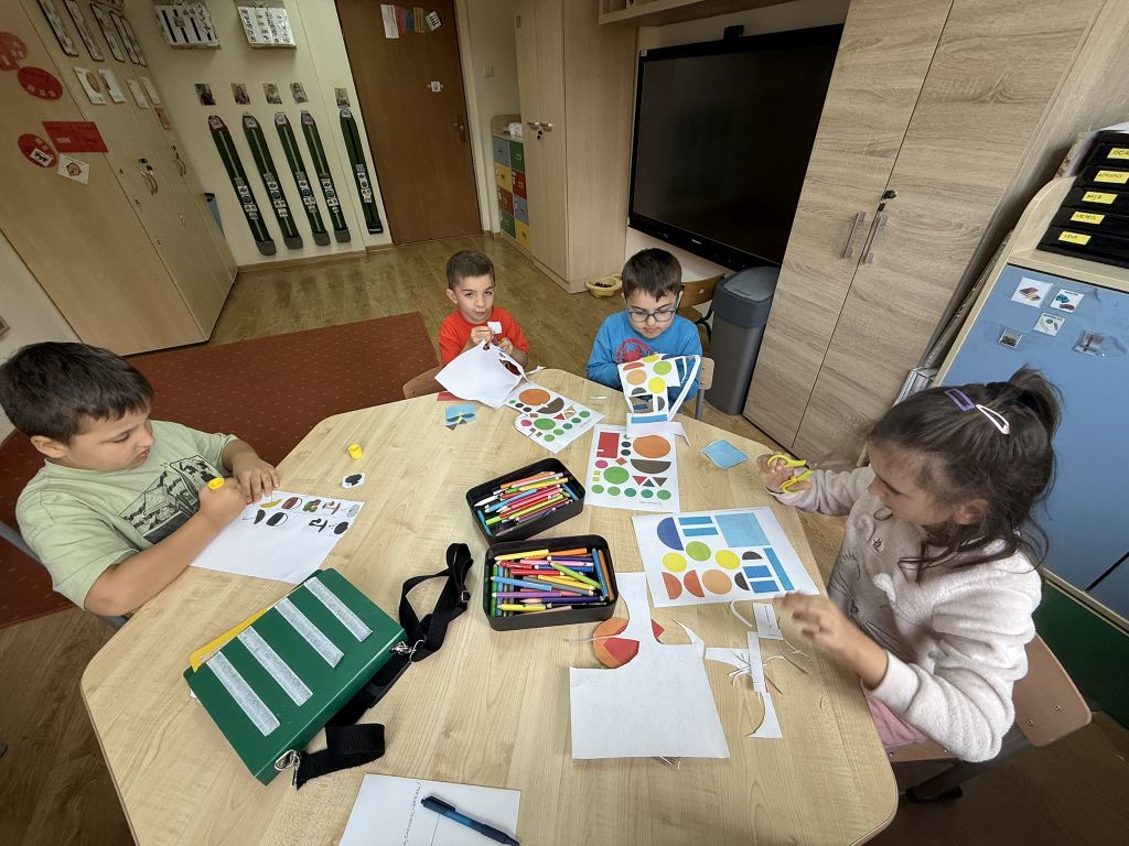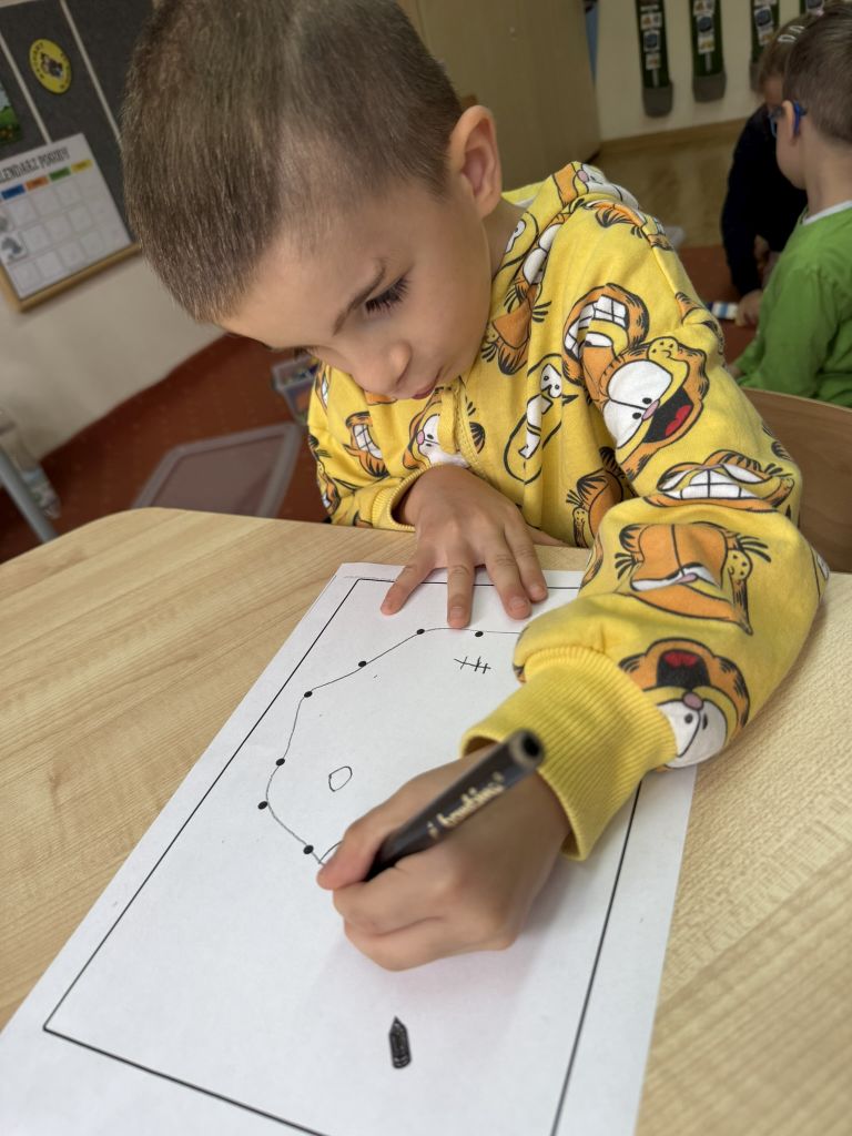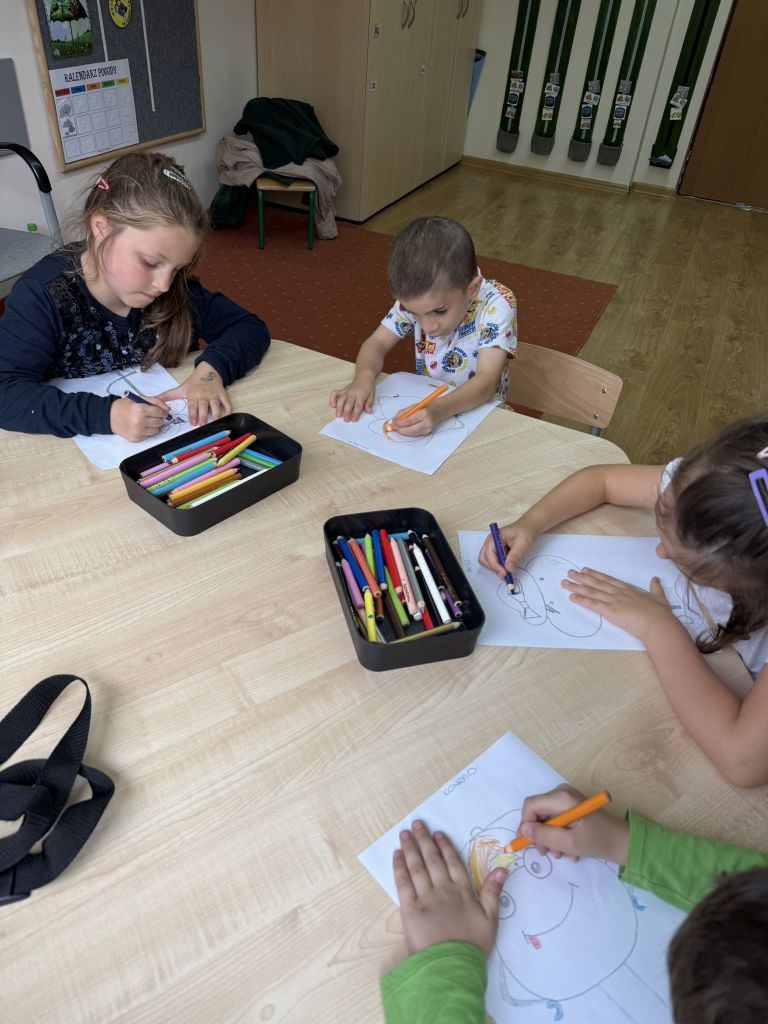 Nie zabrakło ćwiczeń wspierających motorykę małą- dzieci rysowały, wycinały i składały elementy, przygotowując przy tym rączki na kolejny rok pracy . Wszyscy chętnie ze sobą współpracowali😊.