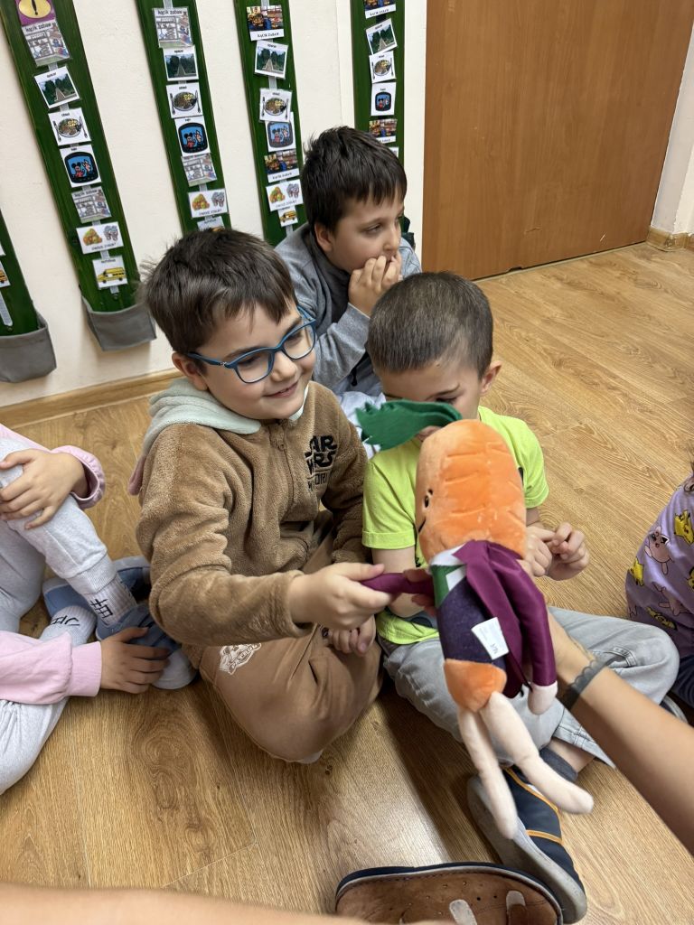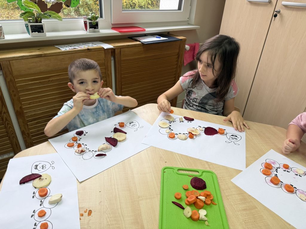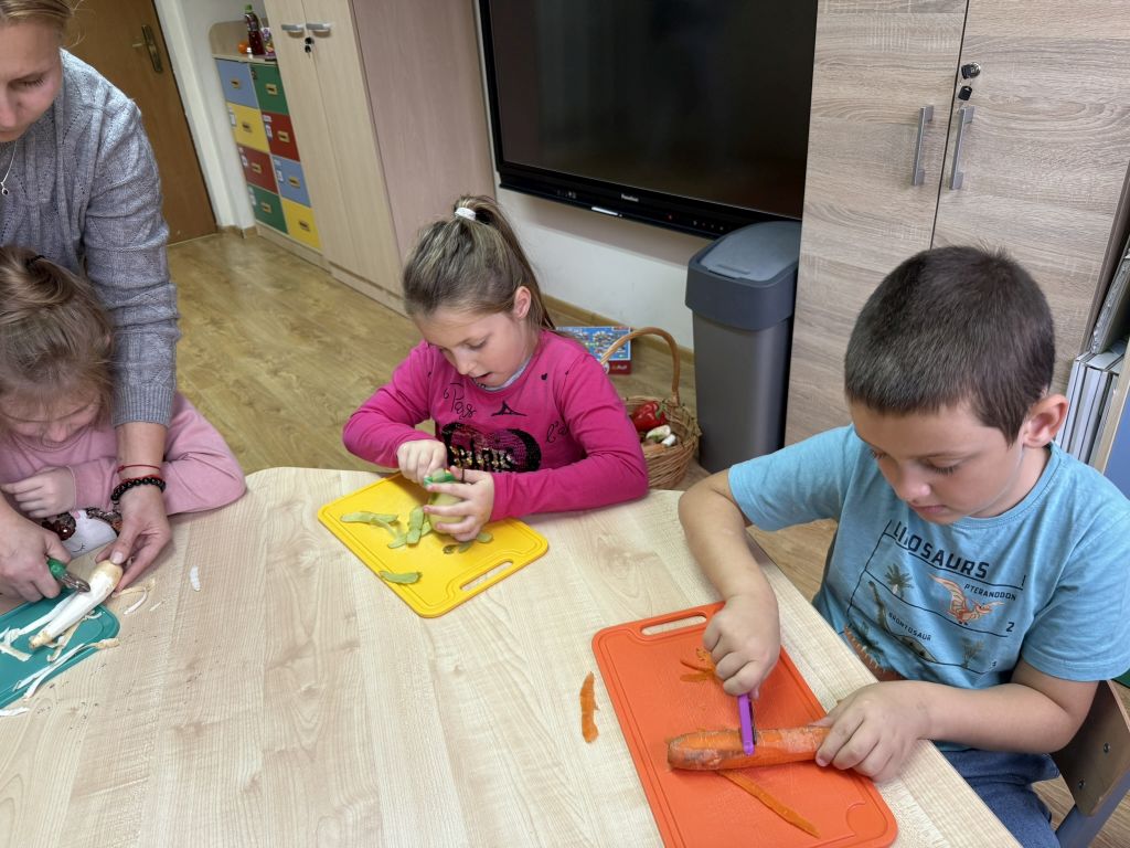 Zaczynając od wycieczki do sklepu, gdzie każdy mógł wybrać produkty potrzebne do zajęć, gdzie będą uczyć się obierać, kroić i próbować nowych warzyw. Następnie z zaangażowaniem uczestnictwo w teatrzyku „Warzywniak marchewek”. Podczas przedstawienia przedszkolaki nazywały i dopasowywały prawdziwe i zabawkowe warzywa, rozwijając spostrzegawczość, komunikację i umiejętność klasyfikowania.