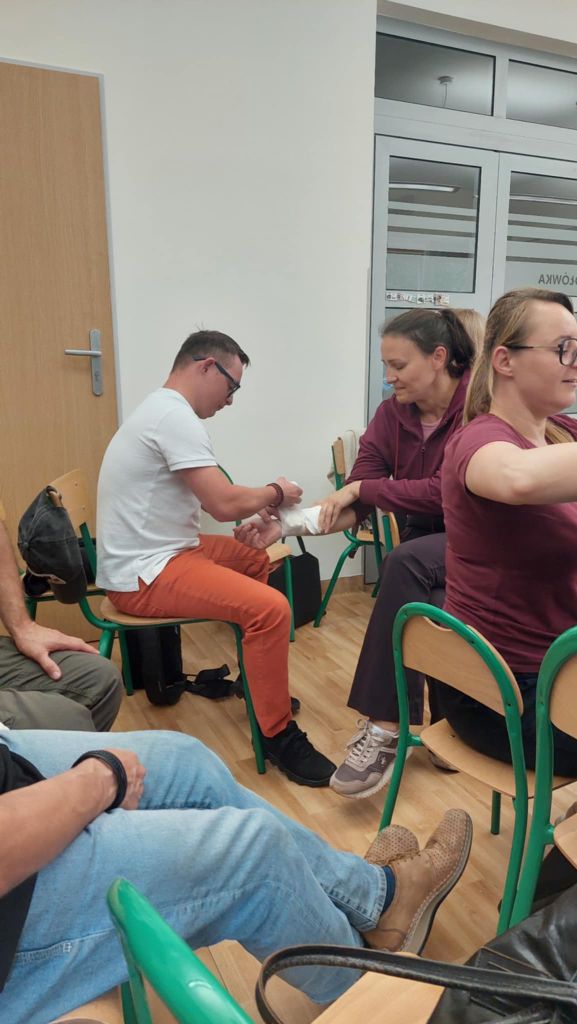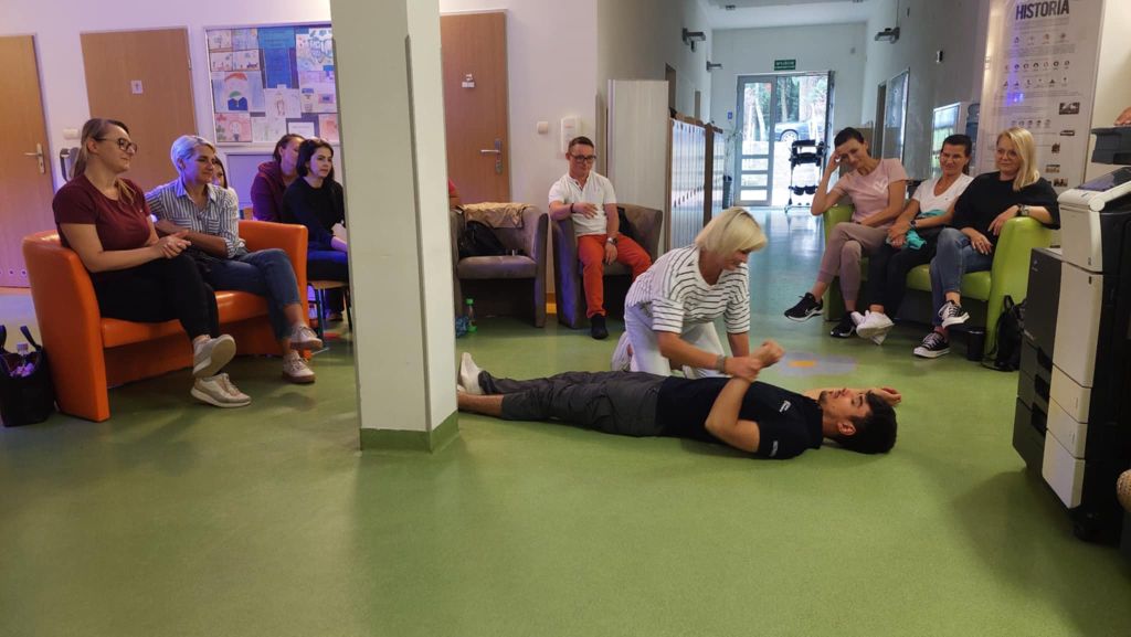 Sierpień zakończyliśmy ciekawym i praktycznym kilkugodzinnym szkoleniem z Pierwszej Pomocy Przedmedycznej dla pracowników placówek prowadzonych przez Stowarzyszenie Pomocy Niepełnosprawnym „BRATEK”, przeprowadzone przez Instruktorów Ratownictwa Medycznego z Centrum Ratownictwa we Wrocławiu.