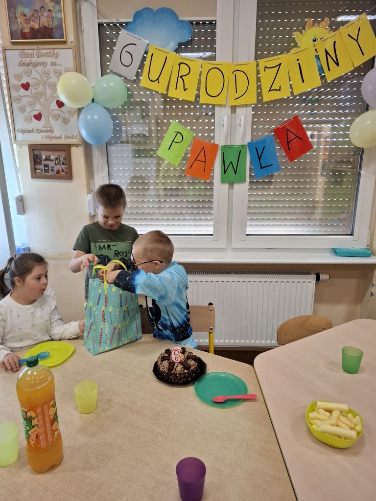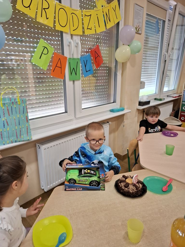 W grupie Biedronek była okazja do świętowania: nasz Paweł obchodził 6 urodziny. Były życzenia, prezenty i pyszny tort, a nasz solenizant pomyślał życzenie i zdmuchnął świeczkę na torcie. Po słodkim poczęstunku była wspólna zabawa. Sto lat Pawełku!