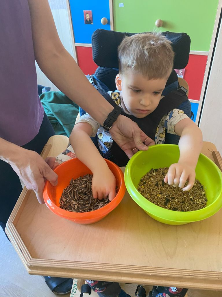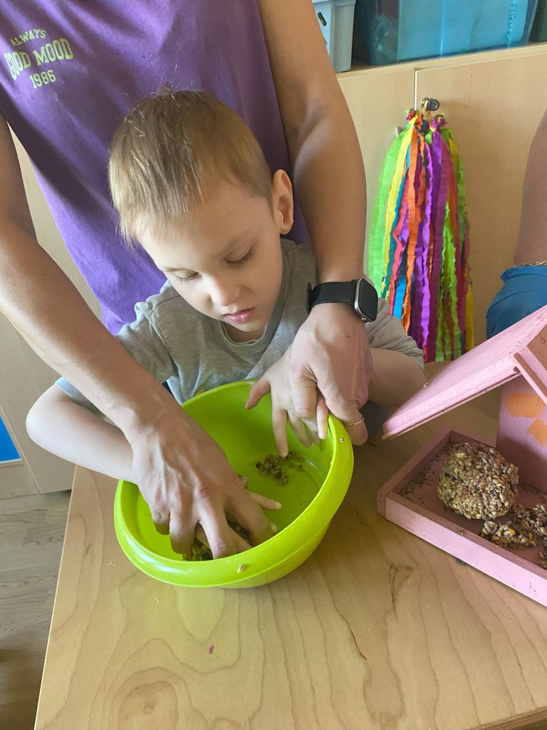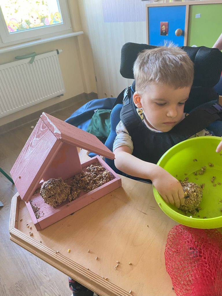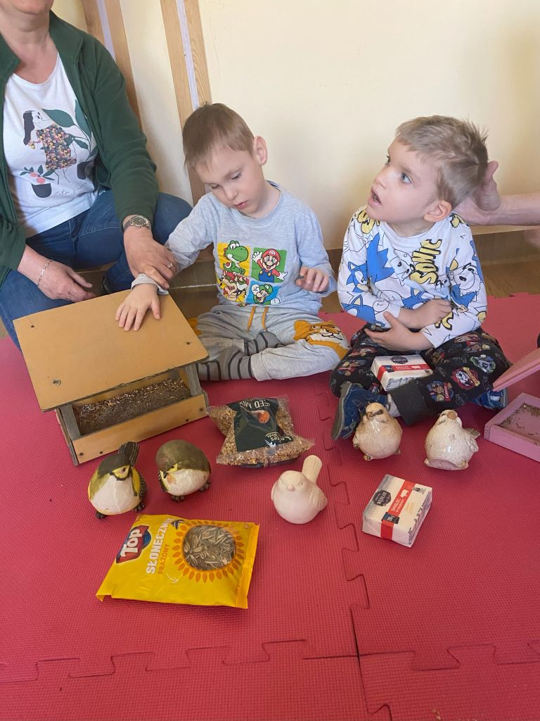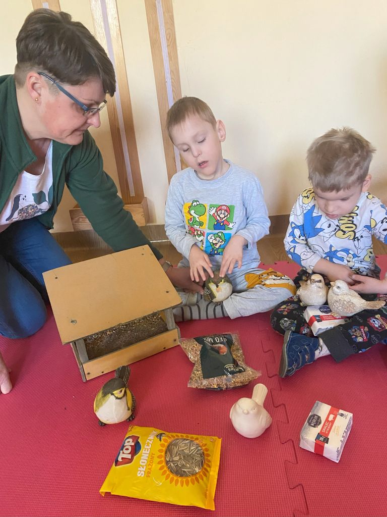 My Krasnale o ptakach pamiętamy i je zawsze dokarmiamy. Przygotowanie ptasich smakołyków było dobrym ćwiczeniem rąk, oraz świetną zabawą sensoryczną z różnymi fakturami. Nasi skrzydlaci przyjaciele nie odlecą już z pustymi brzuszkami, a mroźna zima nie będzie dla nich straszna.