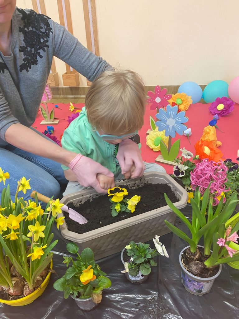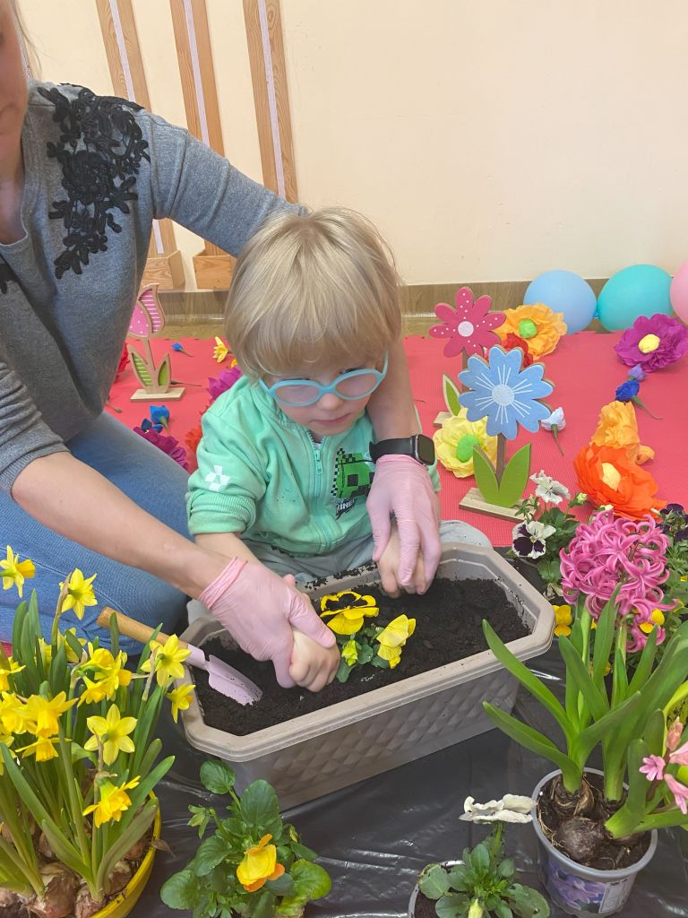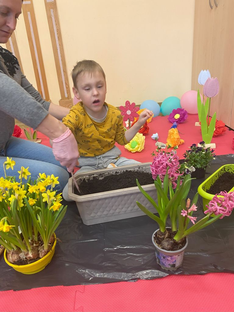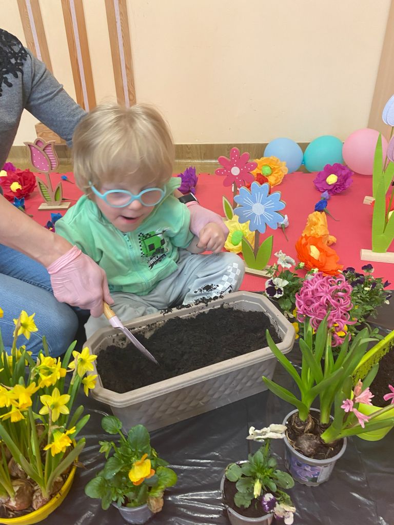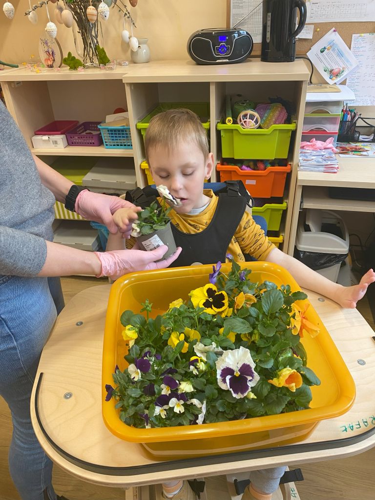 Wraz ze zbliżającym się wkrótce nadejściem wiosny Krasnale włączyły w prace ogrodnicze, dotykaliśmy, uklepywaliśmy ziemię i sadziliśmy z pomocą pani kolorowe wiosenne kwiaty. Nasze parapety wypełniły donice żonkilami, hiacyntami