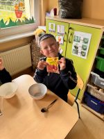 2025.06 motylki 1 200Prawie każdy lubi galaretkę i nie inaczej jest w naszej grupie. Dzieci przygotowały sobie pyszną przekąskę z kolorowych galaretek.
