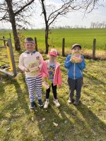 „Ciężką pracę” miały dzieci do wykonania. Zajączek Wielkanocny pochował pyszne czekoladowe jajka, więc przedszkolaki z wielkim zaangażowaniem oraz ogromną radością szukały i zbierały do koszyczków ukryte smakowite skarby.