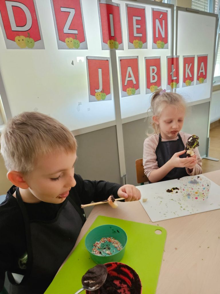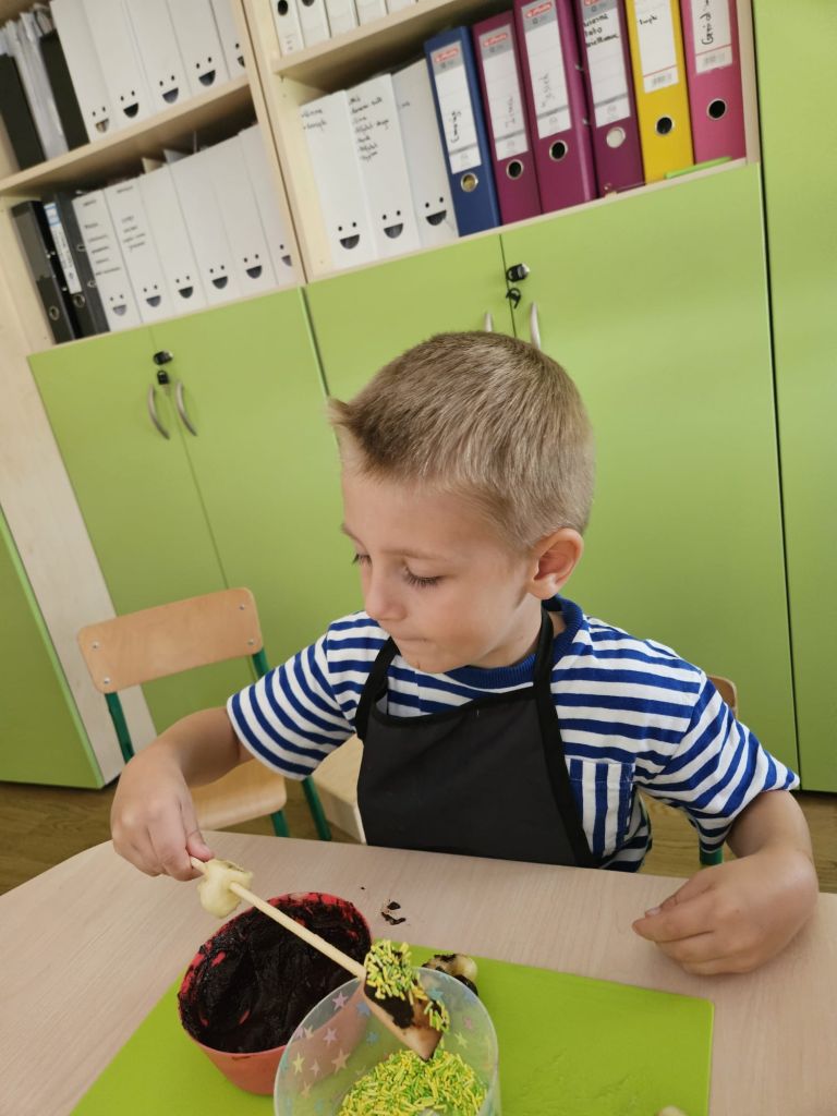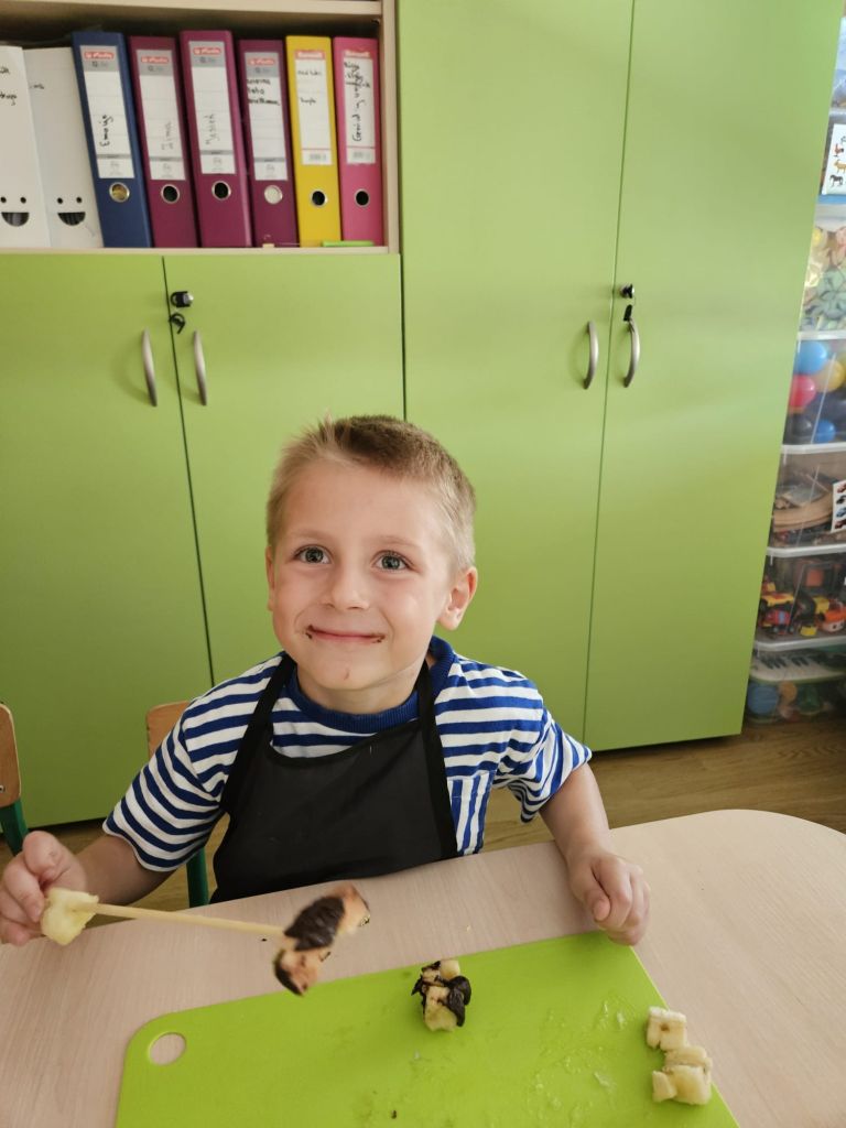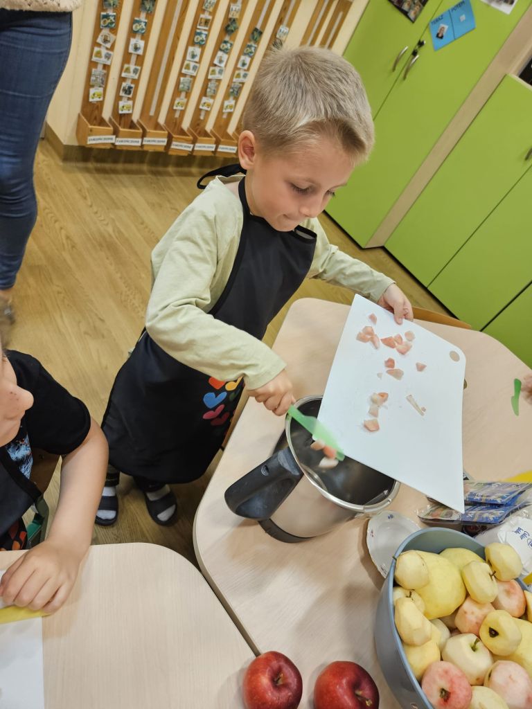 Podczas zajęć plastycznych tworzyliśmy prace o tematyce jesiennej – kolorowe liście, drzewa i owoce. Nie zabrakło także elementów sensoryki – dzieci miały możliwość doświadczać różnorodnych faktur, zapachów i kształtów, co sprawiło im dużo radości.