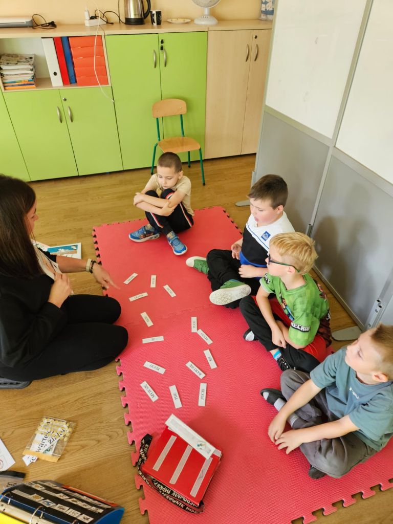 Na początku miesiąca wspominaliśmy lato, podróże oraz zabawy na świeżym powietrzu. Rozmowy o wakacjach były okazją do opowiadania, rozwijania słownictwa i budowania więzi między dziećmi.