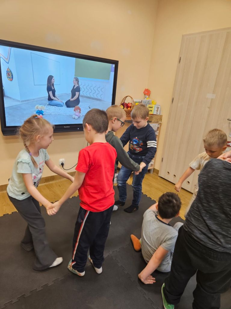 W ramach zajęć fizycznych dzieci ćwiczyły metodą Weroniki Sherborne, która pozwalała im na rozwój motoryki oraz integrację sensoryczną przez ruch i zabawę.