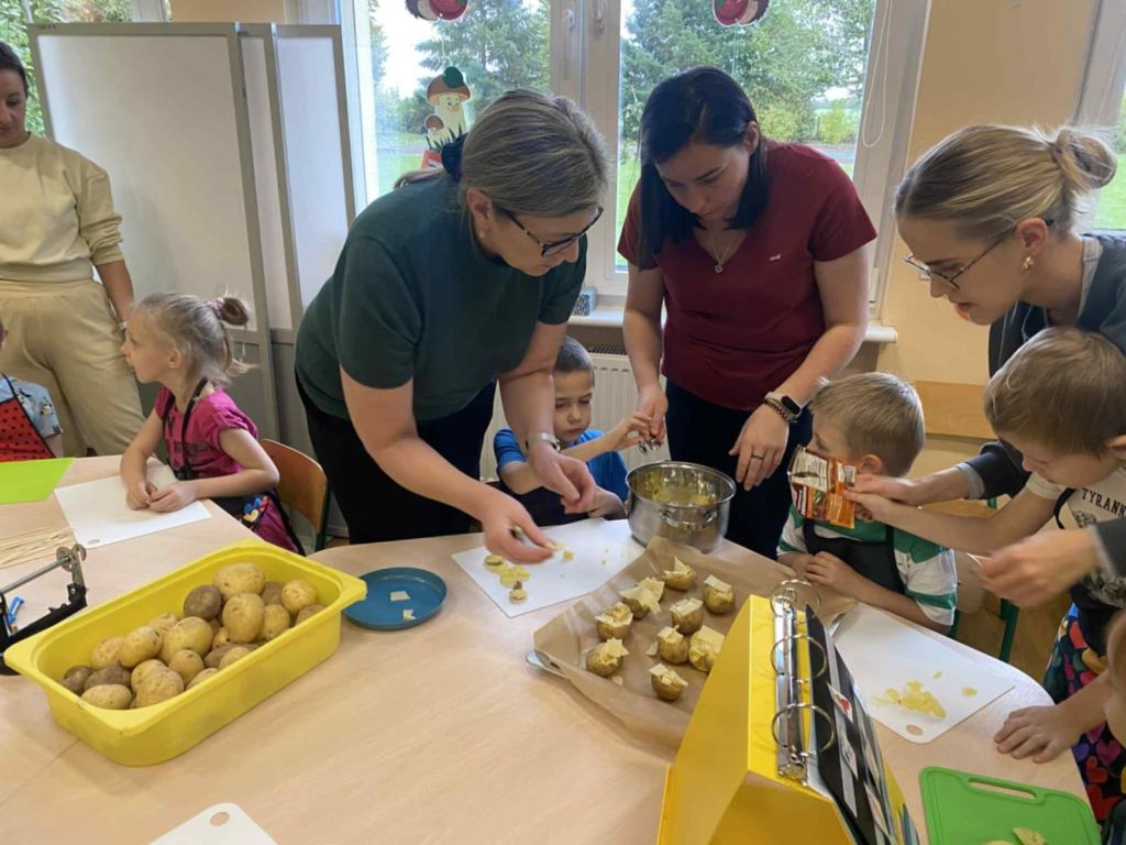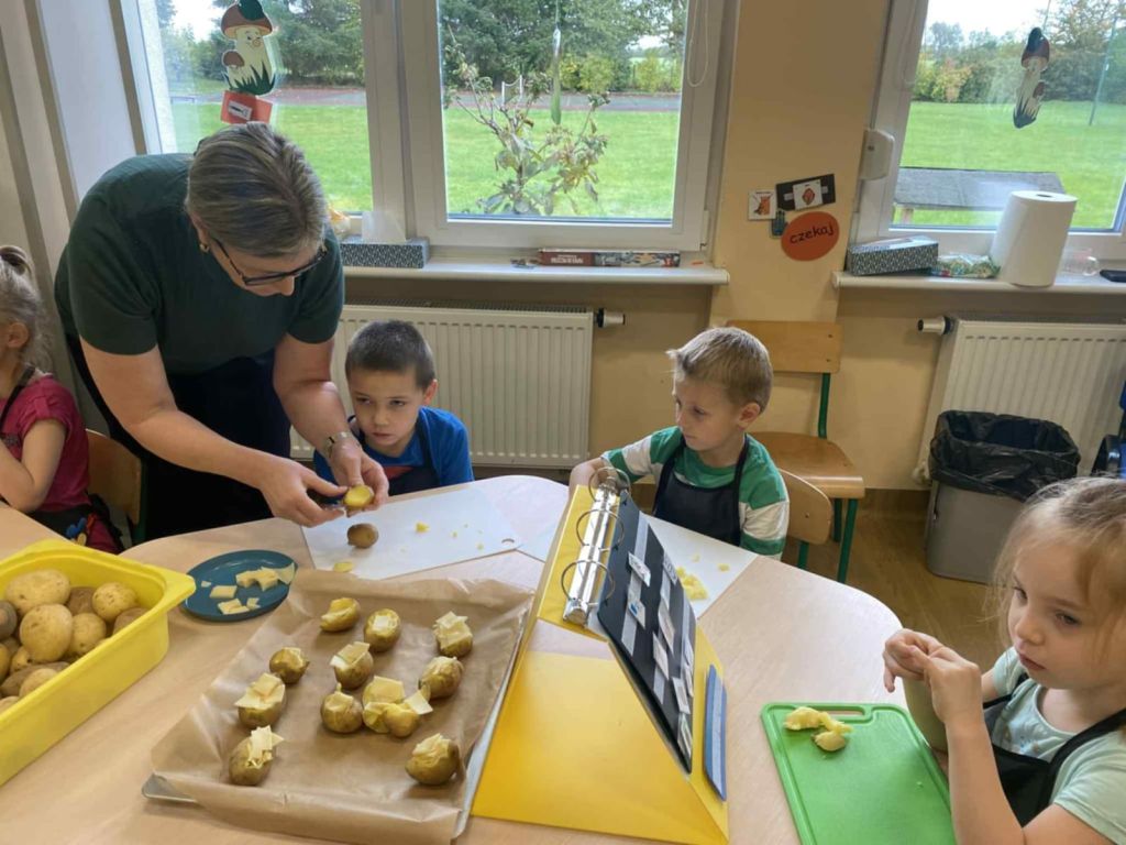 W październiku w naszym przedszkolu zorganizowaliśmy wyjątkowe zajęcia, które wprowadziły dzieci w magiczny świat jesieni. Dzieci miały okazję świętować Dzień Ziemniaka oraz Dyni, uczestnicząc w różnorodnych, kreatywnych aktywnościach.