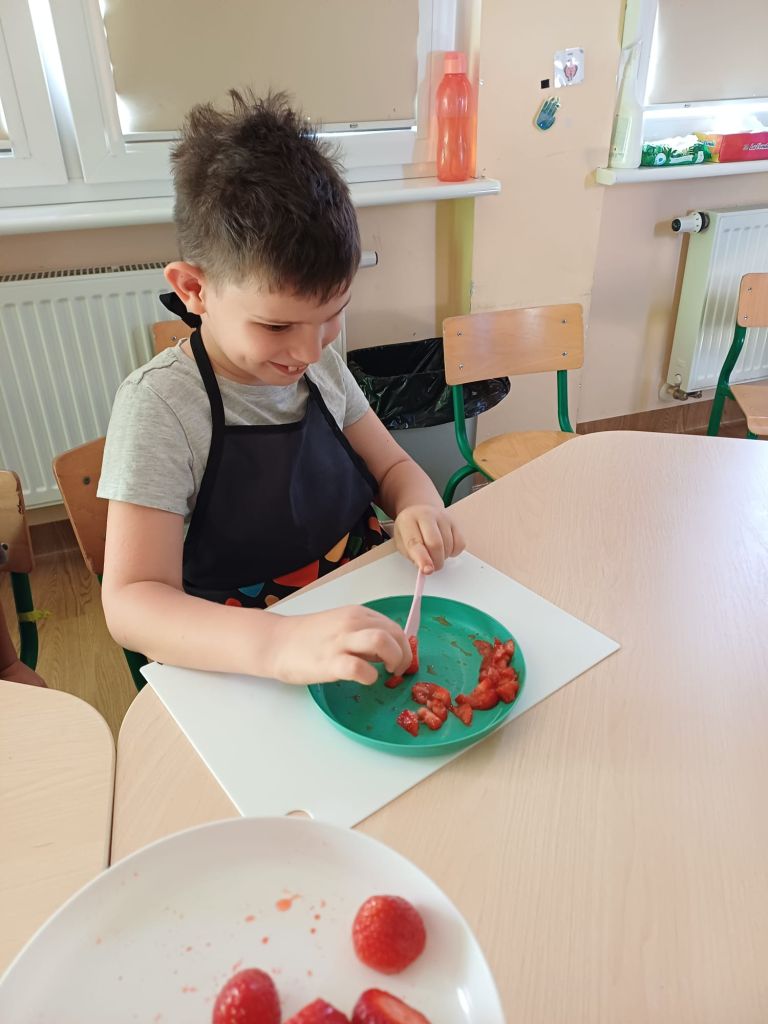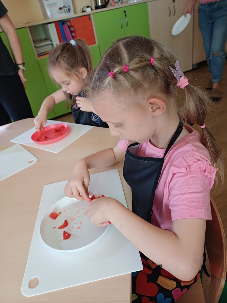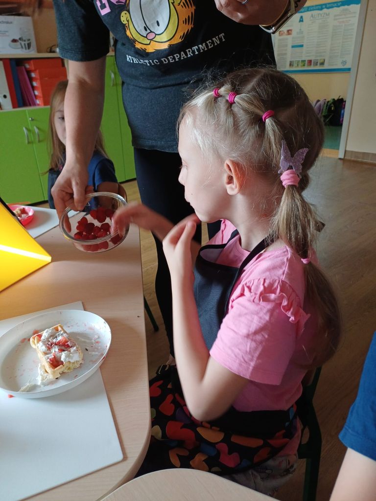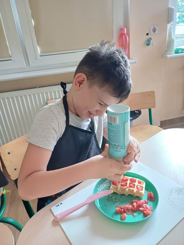 Dużo uwagi poświęcaliśmy temu, by dobrze się poznać, uczyć się współpracy i rozwijać umiejętności komunikacyjne. Zajęcia sensoryczne były okazją do odkrywania nowych wrażeń i pobudzania wyobraźni. Nie obyło się również bez zajęć kulinarnych. Wspólne przyrządzanie gofrów sprawiło dzieciom mnóstwo radości, a efekt końcowy okazał się przepyszny. Co ważne, podczas tych zajęć dzieci uczyły się także samodzielności, współpracy oraz czerpania satysfakcji z własnej pracy.