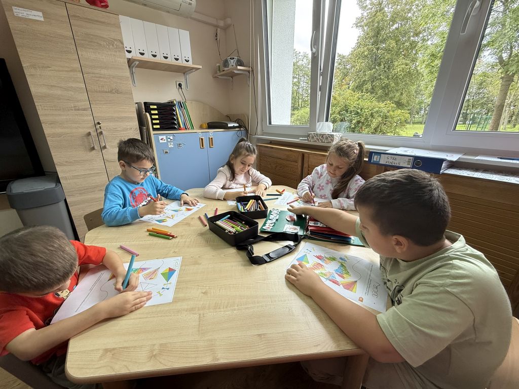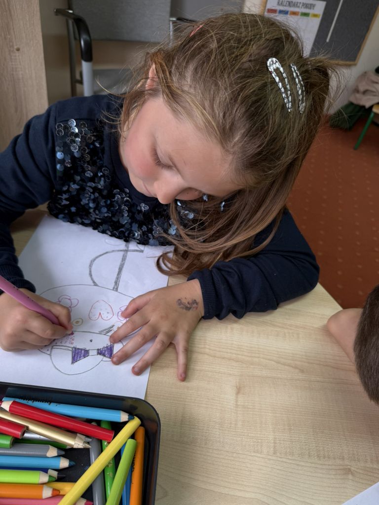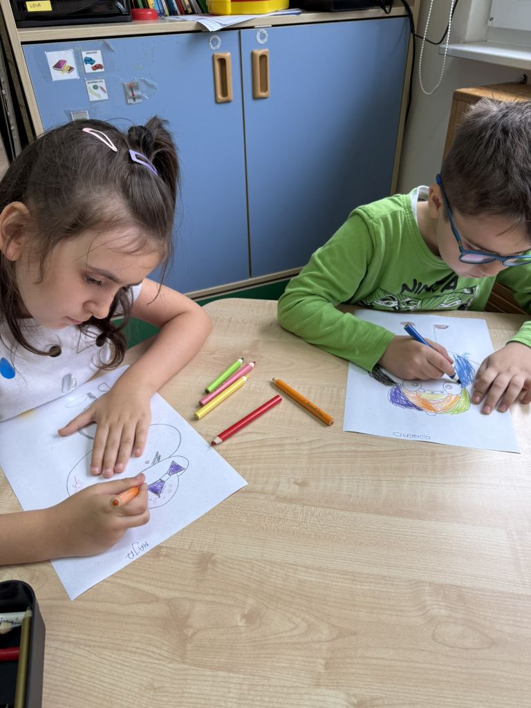 Nie zabrakło ćwiczeń wspierających motorykę małą- dzieci rysowały, wycinały i składały elementy, przygotowując przy tym rączki na kolejny rok pracy . Wszyscy chętnie ze sobą współpracowali😊.