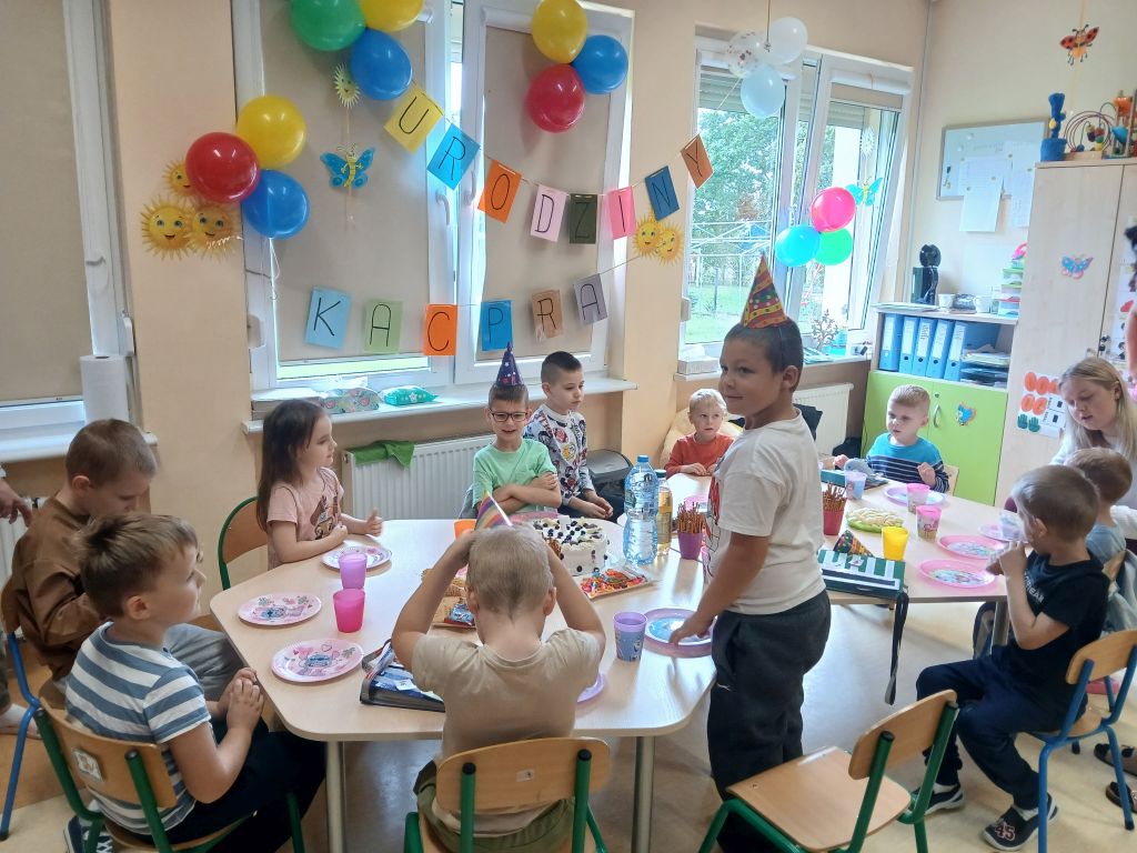 Wrzesień w grupie „Zuchy” był pełen atrakcji i radosnych chwil. Już od pierwszych dni dzieci mogły cieszyć się wspólnymi świętami – urodziny Kacpra i Antosia stały się okazją do złożenia pięknych życzeń, wspólnej zabawy i słodkiego poczęstunku.