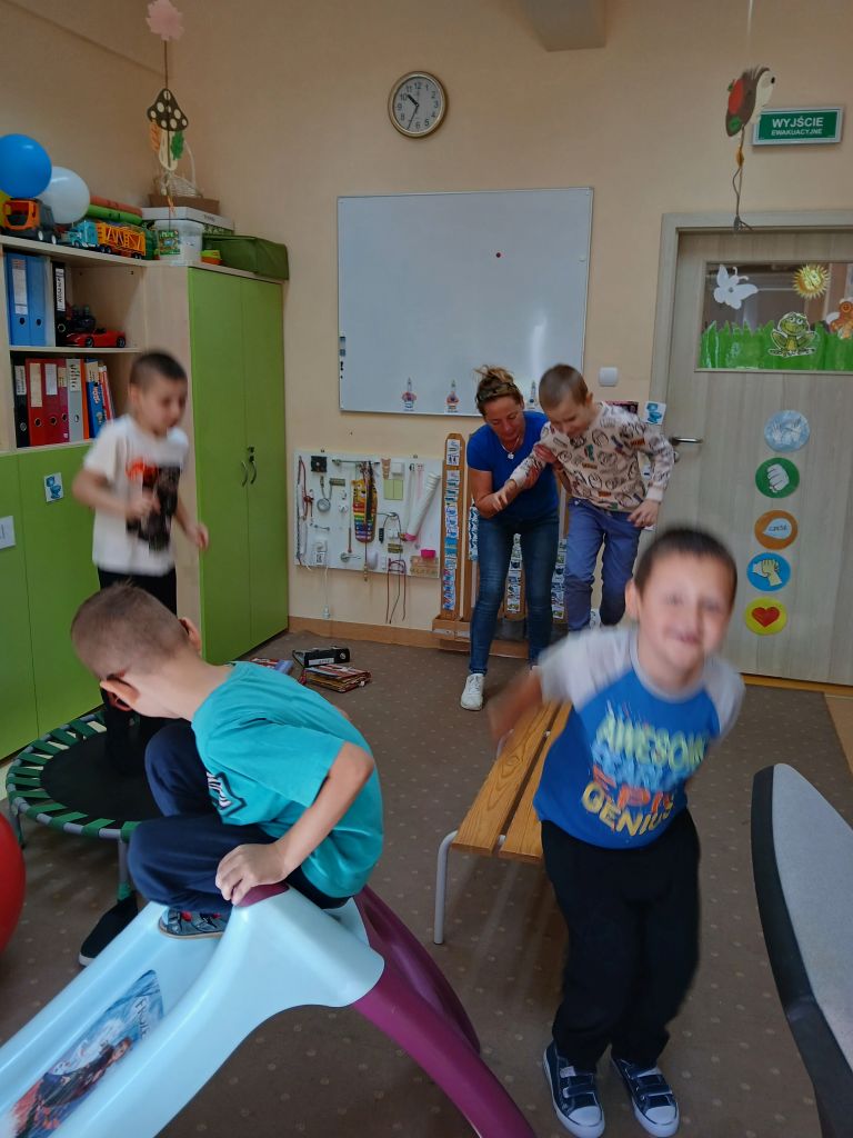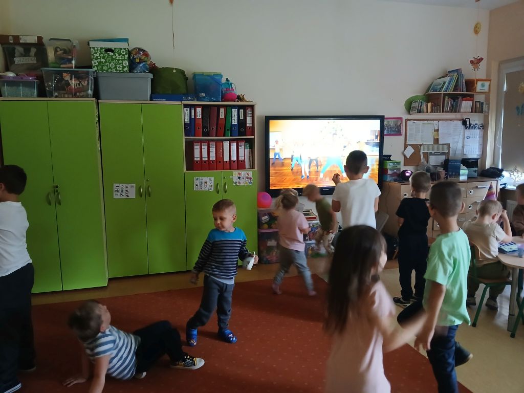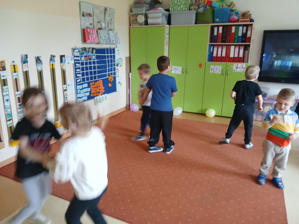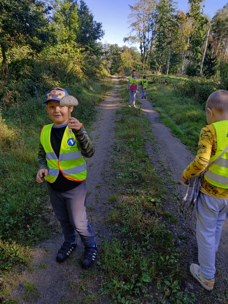 W tym miesiącu rozpoczęliśmy także realizację innowacji pedagogicznej „Aktywne przedszkolaki”, dzięki której ruch, ćwiczenia gimnastyczne i zabawa na świeżym powietrzu towarzyszą nam każdego dnia. Dzieci z entuzjazmem uczestniczyły w poszukiwaniu oznak jesieni w lesie, obserwowały zmieniającą się przyrodę, a także brały udział w „grzybobraniu”, które przyniosło wiele śmiechu i radości.