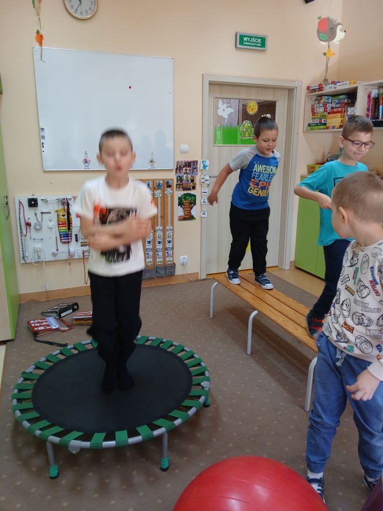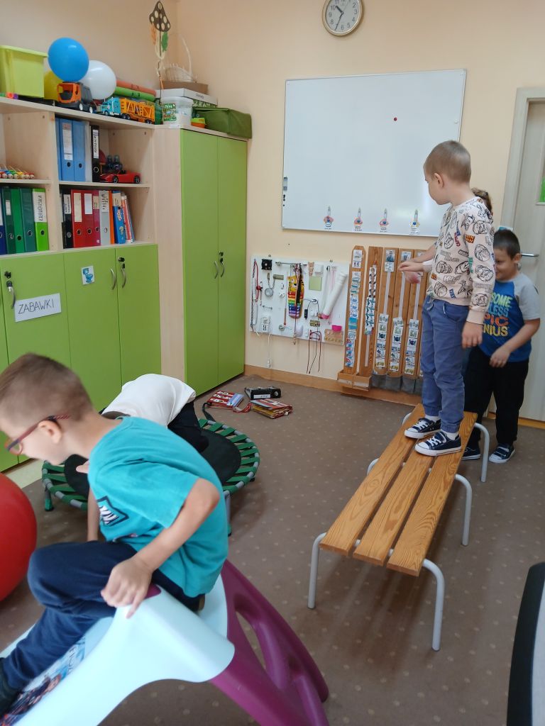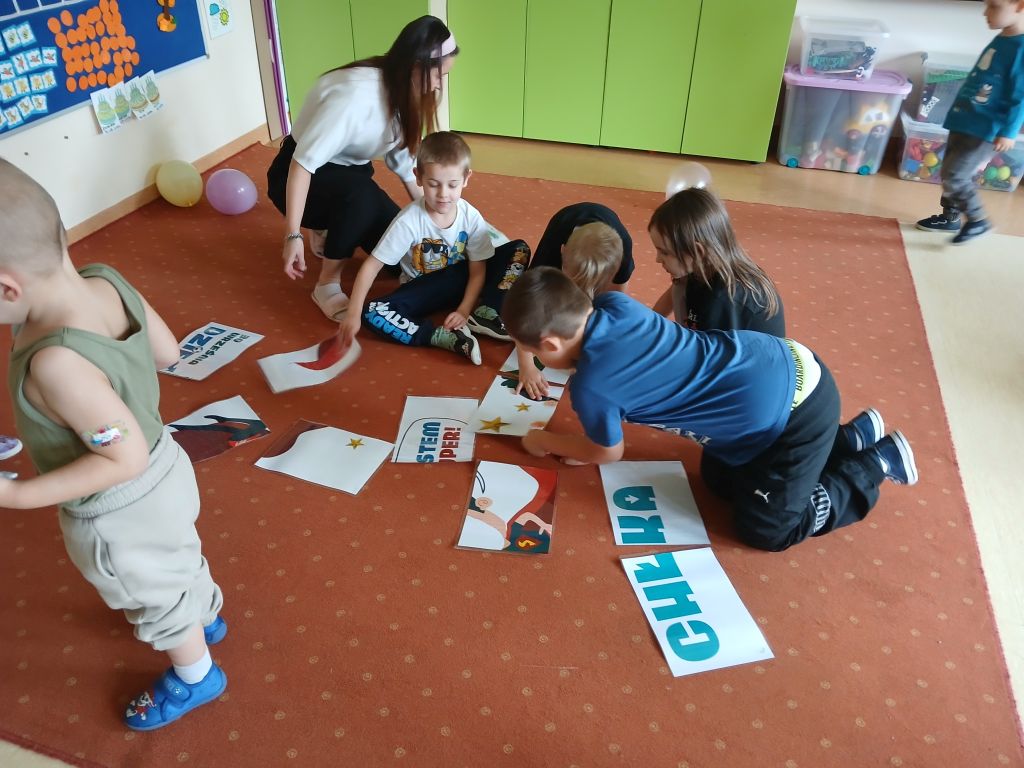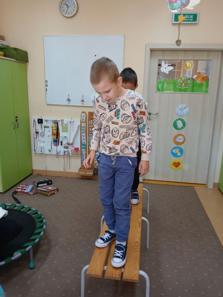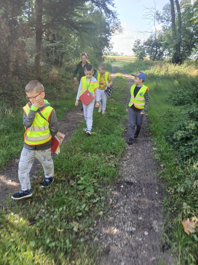 W tym miesiącu rozpoczęliśmy także realizację innowacji pedagogicznej „Aktywne przedszkolaki”, dzięki której ruch, ćwiczenia gimnastyczne i zabawa na świeżym powietrzu towarzyszą nam każdego dnia. Dzieci z entuzjazmem uczestniczyły w poszukiwaniu oznak jesieni w lesie, obserwowały zmieniającą się przyrodę, a także brały udział w „grzybobraniu”, które przyniosło wiele śmiechu i radości.