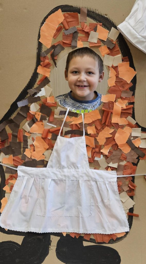 Nie zabrakło także ruchu – ćwiczenia gimnastyczne pozwoliły rozgrzać się w chłodniejsze dni. Niezapomnianą przygodą była wycieczka do Parku Dendrologicznego, gdzie dzieci podziwiały barwy jesieni oraz odwiedziły motylarnię. Na zakończenie stworzyły piękne jesienne kwiaty z gliny, rozwijając przy tym wyobraźnię i zdolności manualne. Nie możemy zapomnieć o uroczystości z okazji 7 urodzin Brajana.